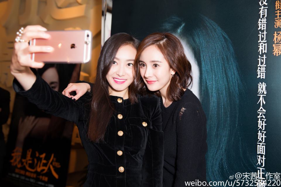 Lưu Diệc Phi cùng Dương Mịch "diễn lại" hình ảnh chụp trong poster phim, Luhan ló mặt phía sau vô cùng tinh nghịch
