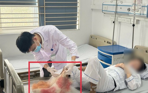 Tự ý điều trị bỏng lửa bằng cách đắp lá tại nhà suốt một tháng, nam bệnh nhân V.M.D (44 tuổi, người dân tộc thiểu số ở Tuyên Quang) đã phải nhập viện trong tình trạng cẳng chân hoại tử nặng, bốc mùi hôi thối, tổn thương sâu tận xương và đối mặt với nguy cơ phải cắt cụt chi để bảo toàn tính mạng.