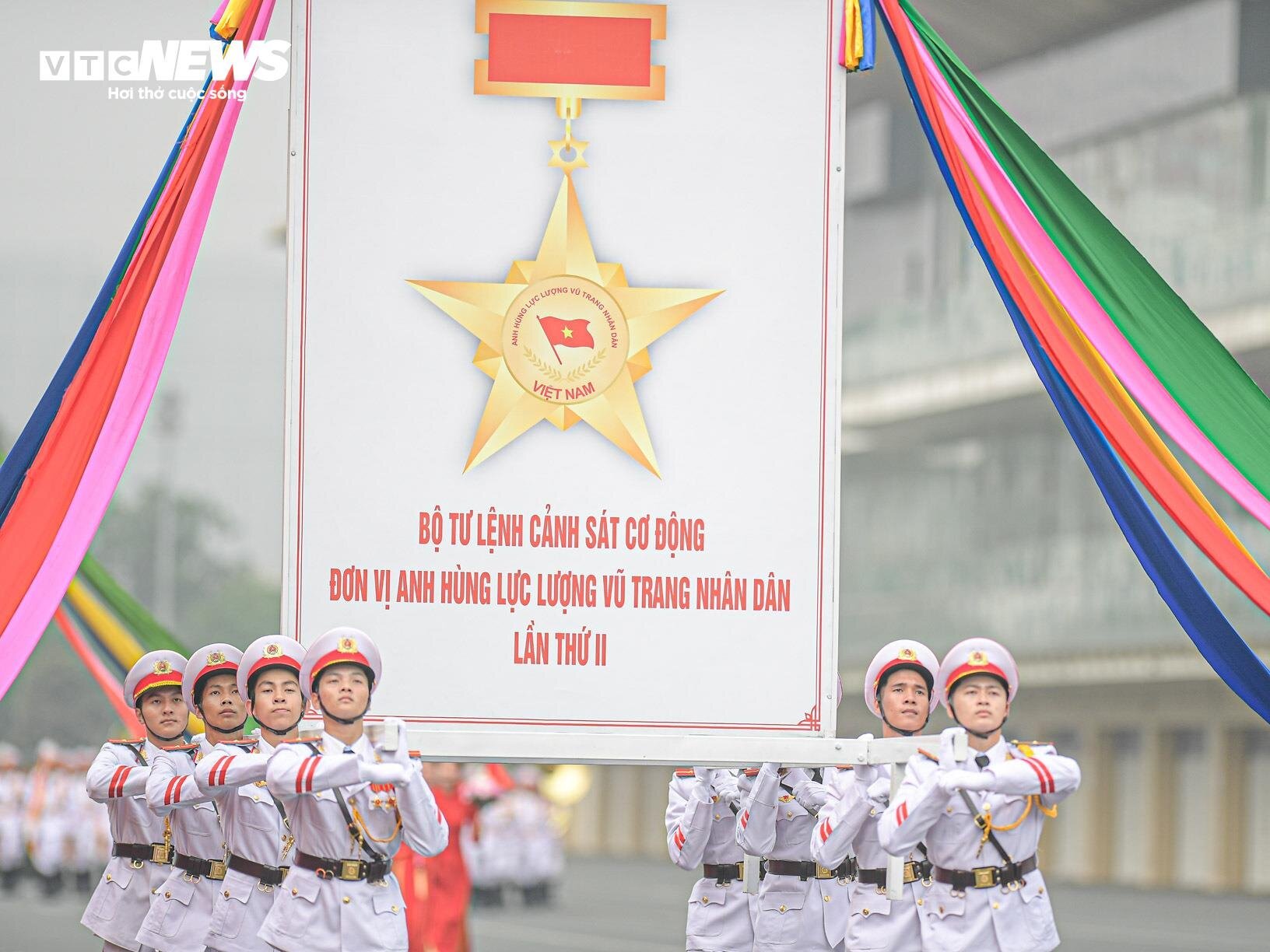 Lực lượng diễu binh, diễu hành trong lễ kỷ niệm với khí thế hào hùng, uy nghiêm, thể hiện niềm vinh dự, tự hào, lớn mạnh của lực lượng cảnh sát cơ động.