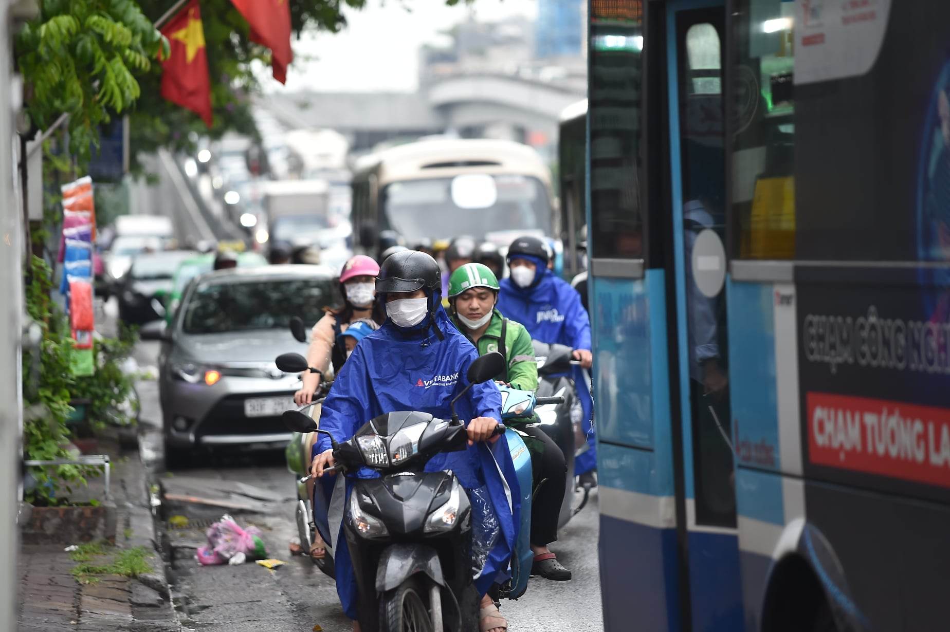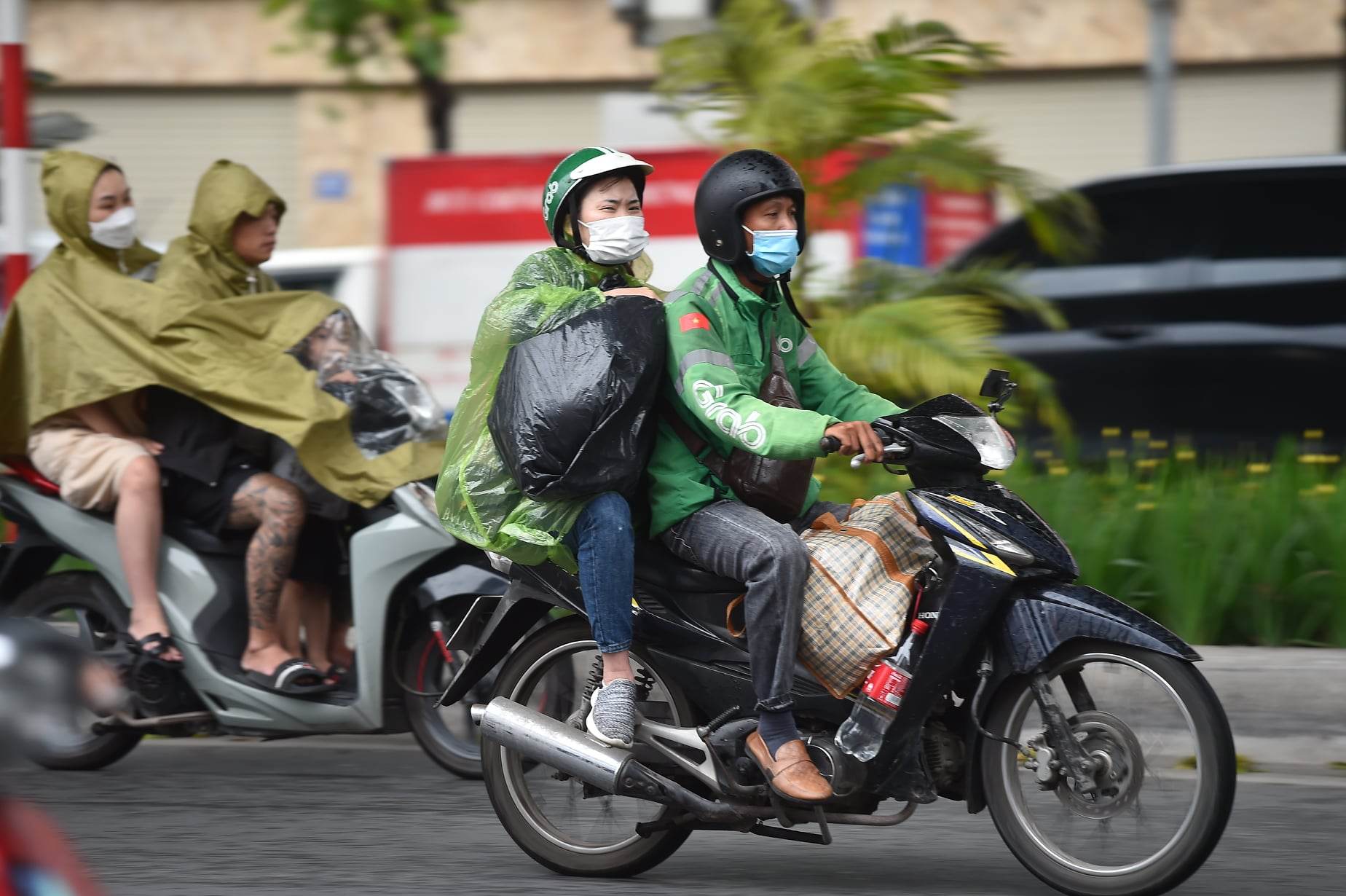 Trên nhiều tuyến đường, vẫn có khá đông người dân đội mưa tiếp tục di chuyển ra các bến xe, cửa ngõ để rời khỏi Thủ đô