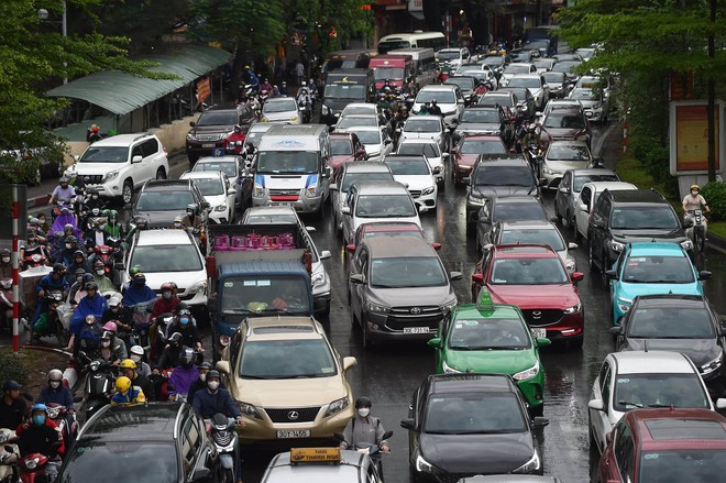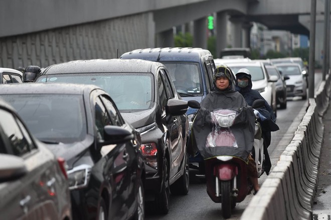 Dòng phương tiện nhích từng cm đường trong mệt mỏi do đúng thời điểm di chuyển thời tiết mưa, giao thông ùn tắc