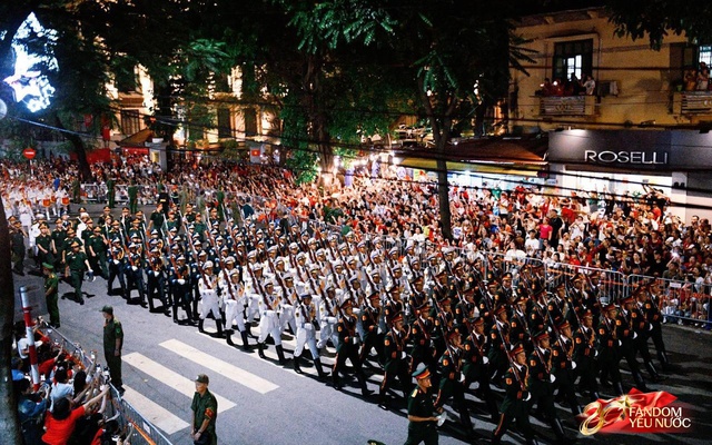 Hình ảnh các khối diễu binh, diễu hành tiến bước giữa dòng người mang đến cảm xúc khó quên. Những bước chân đều tăm tắp, nghiêm trang, hòa cùng tiếng reo hò, vỗ tay cổ vũ của nhân dân hai bên đường. Không còn khoảng cách, đoàn quân như "đi giữa lòng dân", khiến không khí vừa trang nghiêm vừa ấm áp, gợi nên sự gắn bó bền chặt giữa lực lượng vũ trang và nhân dân trong ngày hội lớn.