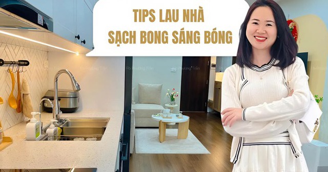 Căn chung cư của vợ chồng Phương dùng sàn gỗ, Phương chia sẻ sai lầm phổ biến nhất khi lau nhà là đổ quá nhiều nước lau sàn. Lượng hóa chất dư thừa không những không làm sạch hơn mà còn khiến sàn bị nhờn, bám bụi nhanh. "Nhà mình lau nhà theo công thức này, chị em mê dọn dẹp nhất định nên thử" - Phương chia sẻ.