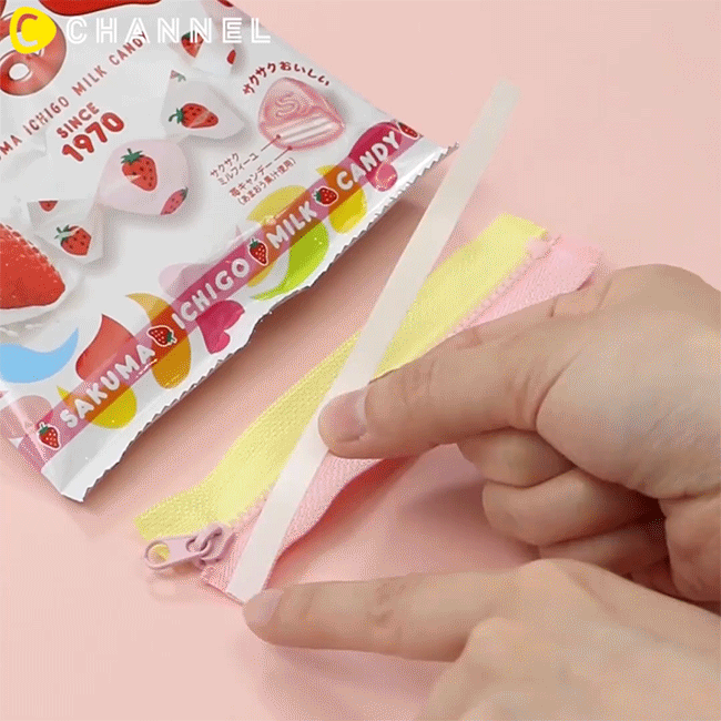 Với những gói kẹo đẹp, chất liệu bền thì chúng ta hoàn toàn có thể làm thành túi đựng bút hay đựng mĩ phẩm đấy!