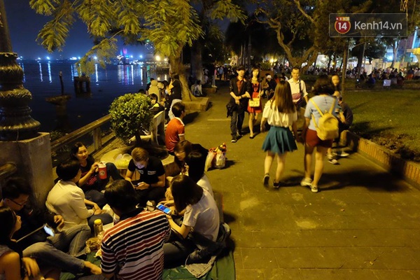 Các bạn trẻ bắt đầu rủ nhau ra đường tại khu vực tại bờ Hồ - (Ảnh: Đỗ Thế Dương)