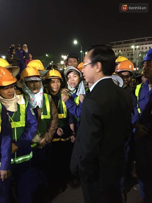 Bí thư Đà Nẵng Nguyễn Xuân Anh thăm và động viên công nhân vệ sinh trong đêm giao thừa - (Ảnh: Đình Thức)