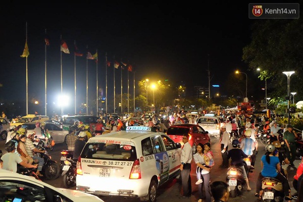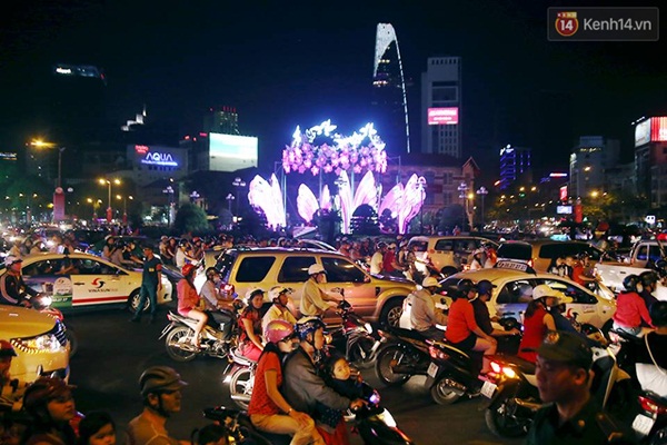 Các ngả đường đổ về khu vực xem pháo hoa ở Sài Gòn đông nghịt