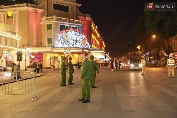 20h30 khu vực Hồ Gươm vẫn khá vắng vẻ, các chiến sĩ CSGT số 1 sẽ phải đảm bảo trật tự an toàn và hướng dẫn giao thông quanh khu vực người dân xem pháo hoa - (Ảnh: Phương Thảo)