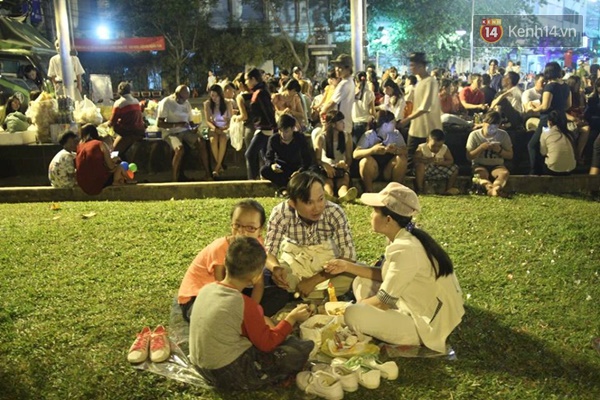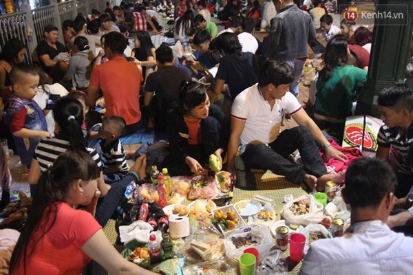Người dân ăn uống chờ xem pháo hoa giao thừa tại bến Bạch Đằng - (Ảnh: Khang Thái)