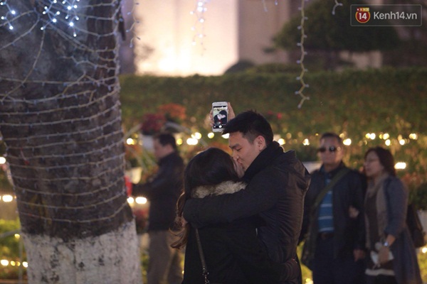 Một đôi tình nhân lưu lại khoảnh khắc hôn nhau trong thời khắc đặc biệt này - (Ảnh: Đinh Ngọc)
