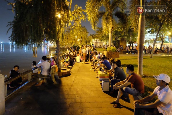 Nhiều bạn trẻ và cặp đôi yêu nhau đã ra bến Bạch Đằng để chờ ngắm pháo hoa bên kia sông Sài Gòn - (Ảnh: Tứ Quý)