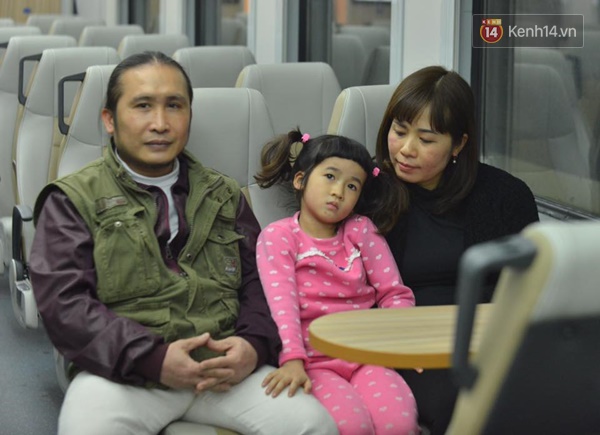 Gia đình anh Võ Tòng Hùng là một trong những hành khách rời ga Hà Nội trên chuyến tàu SE3 xuất phát lúc 22h00 - (Ảnh: Phương Thảo)