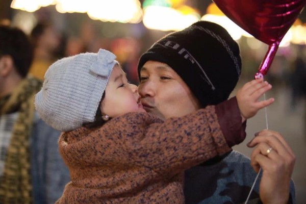 Nụ hôn ấm áp của bố dành cho con gái - (Ảnh: Phương Thảo)